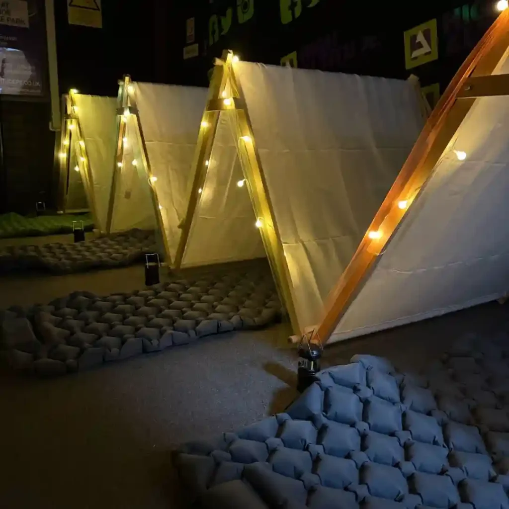 Host an unforgettable sleepover party for birthdays or uniformed clubs and groups with exclusive hire for 20+ guests! Enjoy two trampoline sessions, a movie night with hot chocolate, dinner, breakfast, and your choice from our party menu—all for one set price per person. With DBS-checked staff staying overnight, you’ll have the venue all to yourselves!