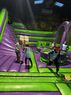 Two teams will face off in the dedicated inflatable arena while the others maintain surveillance (and get some air!) on the trampolines, with regular, high-octane swaps to keep the action flowing.